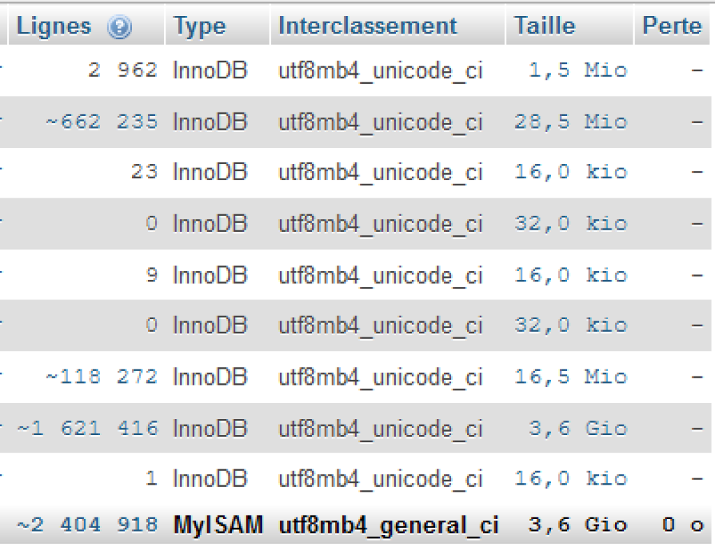 Pour un total de 3.6 Go et quelques 2.4 Mio de lignes.