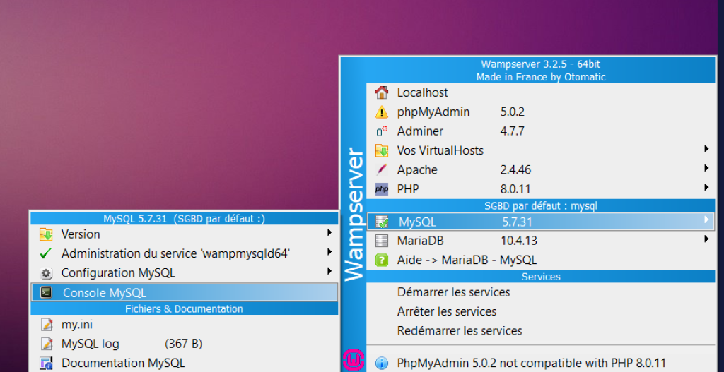 3.1. Ouvrez la console MySql depuis le gestionnaire WAMP comme ci-dessous: