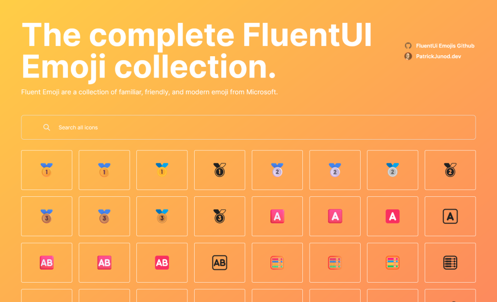 Un explorateur d'emojis Microsoft "Fluent UI" développé avec Livewire et AlpineJS.