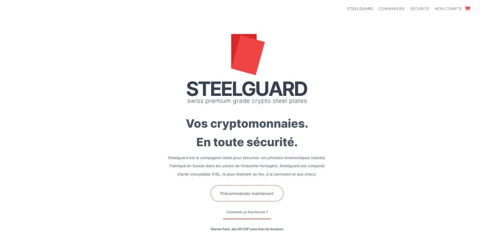 Marque d'outils de backup pour seeds de wallet cryptomonnaies. Side-project avec réalisation de plaquettes de backup de seeds prototypes et site de vente en ligne.